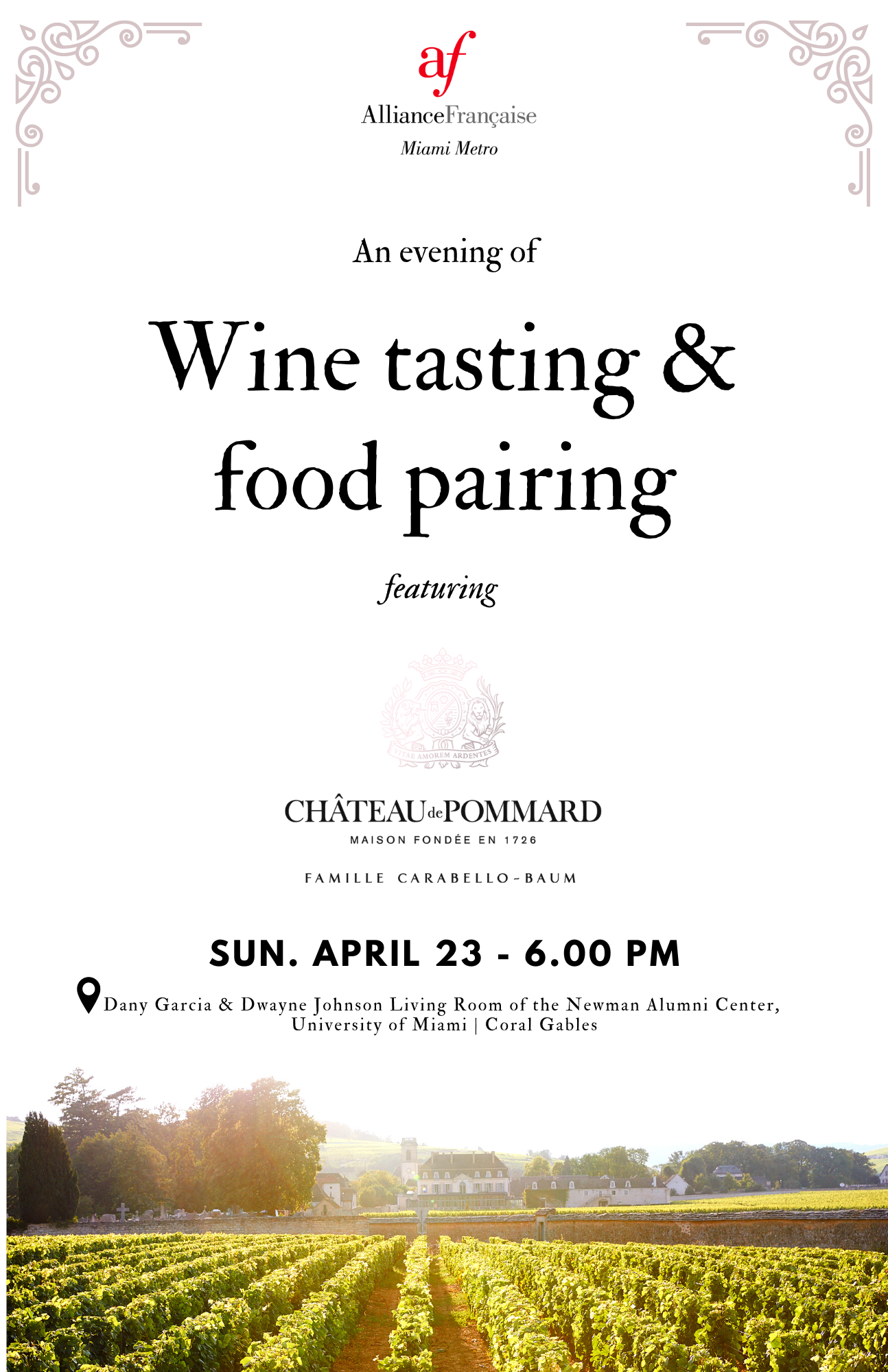 AN EXCEPTIONAL EVENING OF WINE TASTING & FOOD PAIRING featuring CHATEAU DE POMMARD