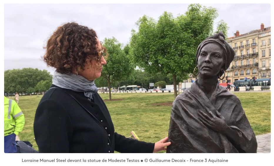 On May 10, 2019, the statue of Modeste Testas, née Al Pouéssi, was unveiled in Bordeaux to commemorate the slave-owning past of this port city of France, in the presence of Lorraine Manuel Steed, her descendant, who helped to portray the character. For the direct descendant of this woman deported to Santo Domingo in the 18th century, this initiatory journey into the life of her ancestor brings her serenity, but also encourages her to explore her country, Haiti.