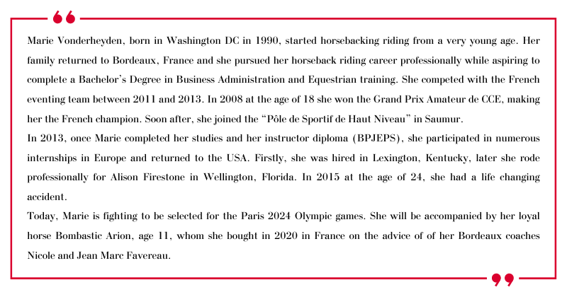 Marie Vonderheyden. Marie will discuss her journey navigating the equestrian world and overcoming a severe traumatic brain injury. Don't